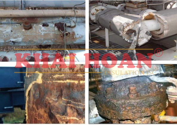 Sự hiện diện của vật liệu cách nhiệt không đạt chất lượng có thể tạo ra một môi trường thúc đẩy sự ăn mòn bằng cách giữ ẩm, thúc đẩy sự tích tụ các chất ăn mòn (như clorua hoặc axit) và tạo ra môi trường thiếu oxy. Những yếu tố này, kết hợp với chênh lệch nhiệt độ và khả năng hư hỏng cơ học đối với lớp cách nhiệt tạo điều kiện lý tưởng cho sự ăn mòn xảy ra.