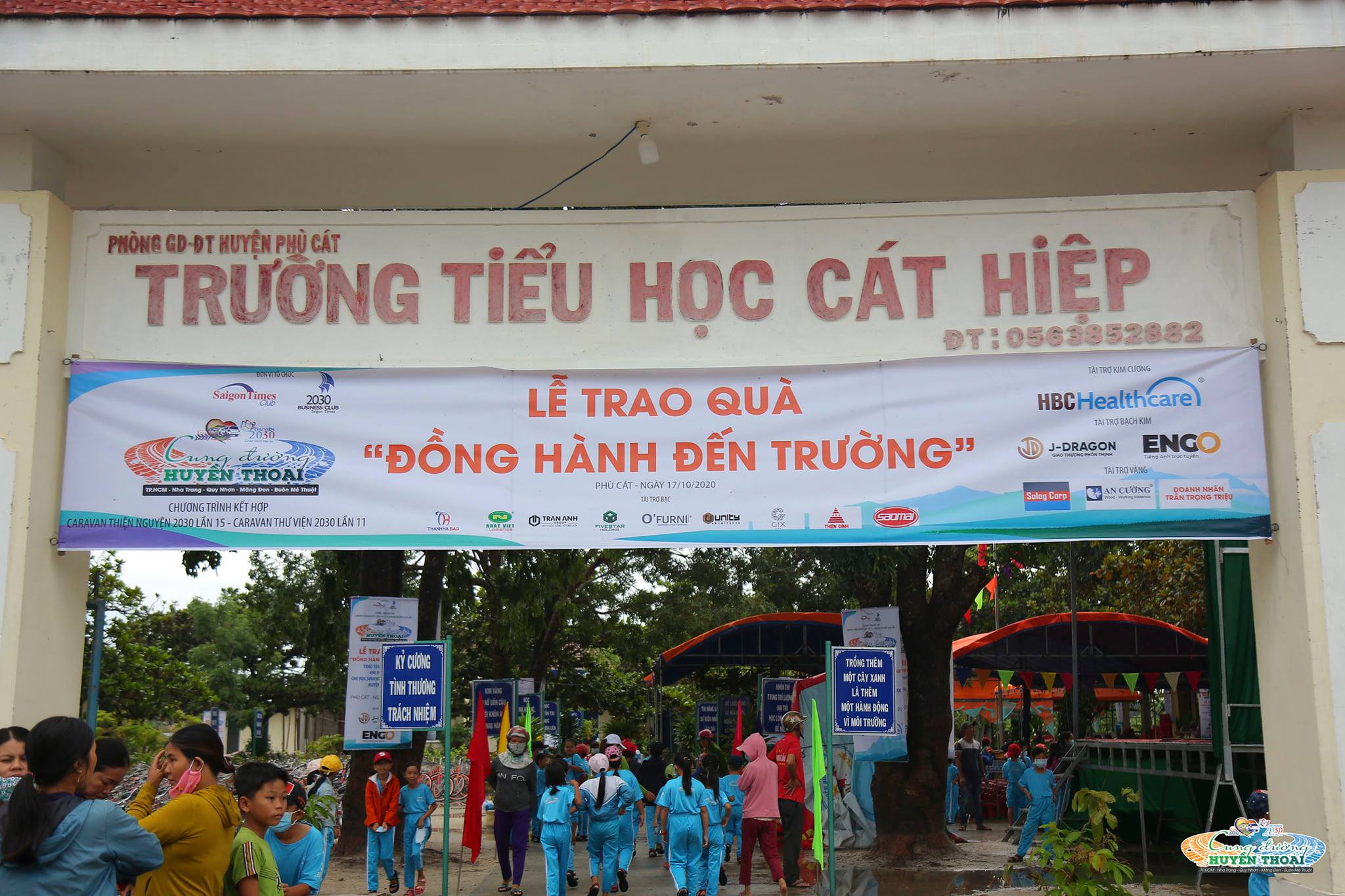 Có mặt ở Phù Cát lúc 5h sáng với những con đường thật thanh bình, ngang qua những thửa ruộng rôm màu mạ non cùng với bầu không khí sương đọng nhè nhẹ khiến ai cũng muốn dừng lại mà sống chậm lại từng chút để tìm kím sự bình yên của thiên nhiên. Trường Tiểu học Cát Hiệp là nơi mà chúng tôi đang hướng tới, các em chào đón chúng tôi bằng không khí náo nức, bằng những ánh mắt bẽn lẽn và nụ cười trong trẻo, vang vang trong trời thu. Hơn 490 phần quà, 300 chiếc xe đạp và 10 phần học bổng đã trao đến tận tay từng em học sinh. Đoàn Caravan cũng đã trao tặng cho các bé Thư Viện Xanh 2030 và bổ sung trang thiết bị cũng như 1500 đầu sách vào Thư Viện 2030 chuẩn quốc gia. |